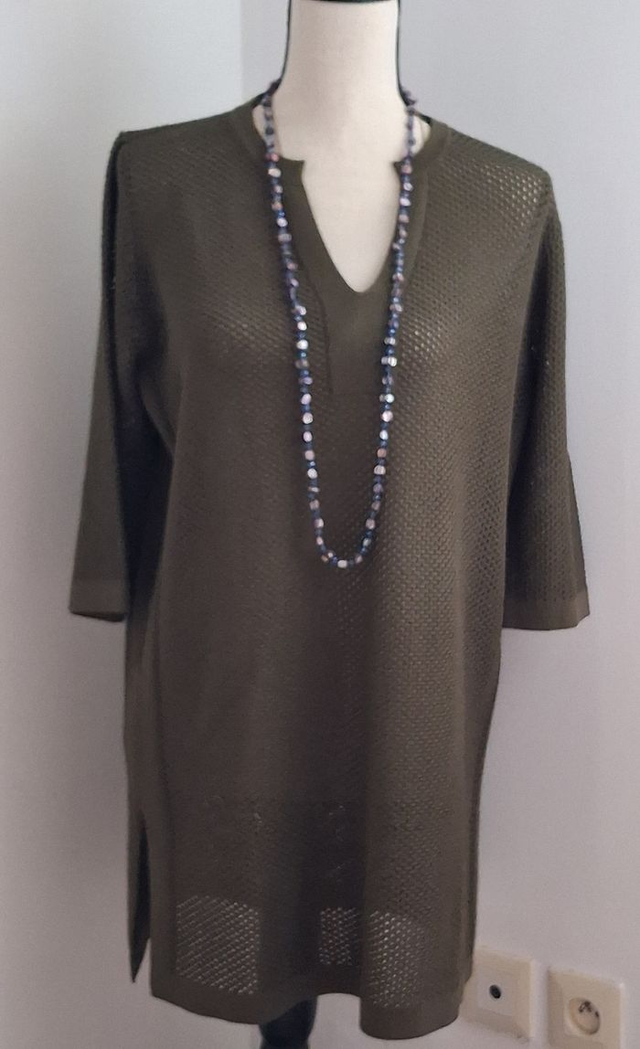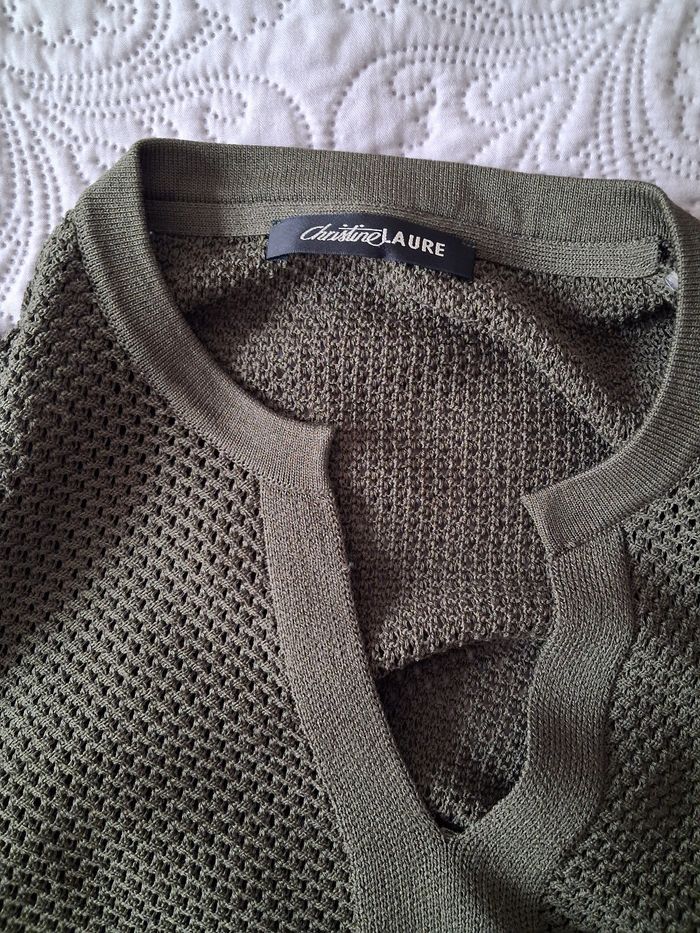 TUNIQUE VERT KAKI CHRISTINE LAURE EN MAILLE. CEINTURE AVEC BOUCLE T2 = 42 NEUVE / COLLECTION 2025 LONGUEUR 78 CM LARGEUR 100 CM