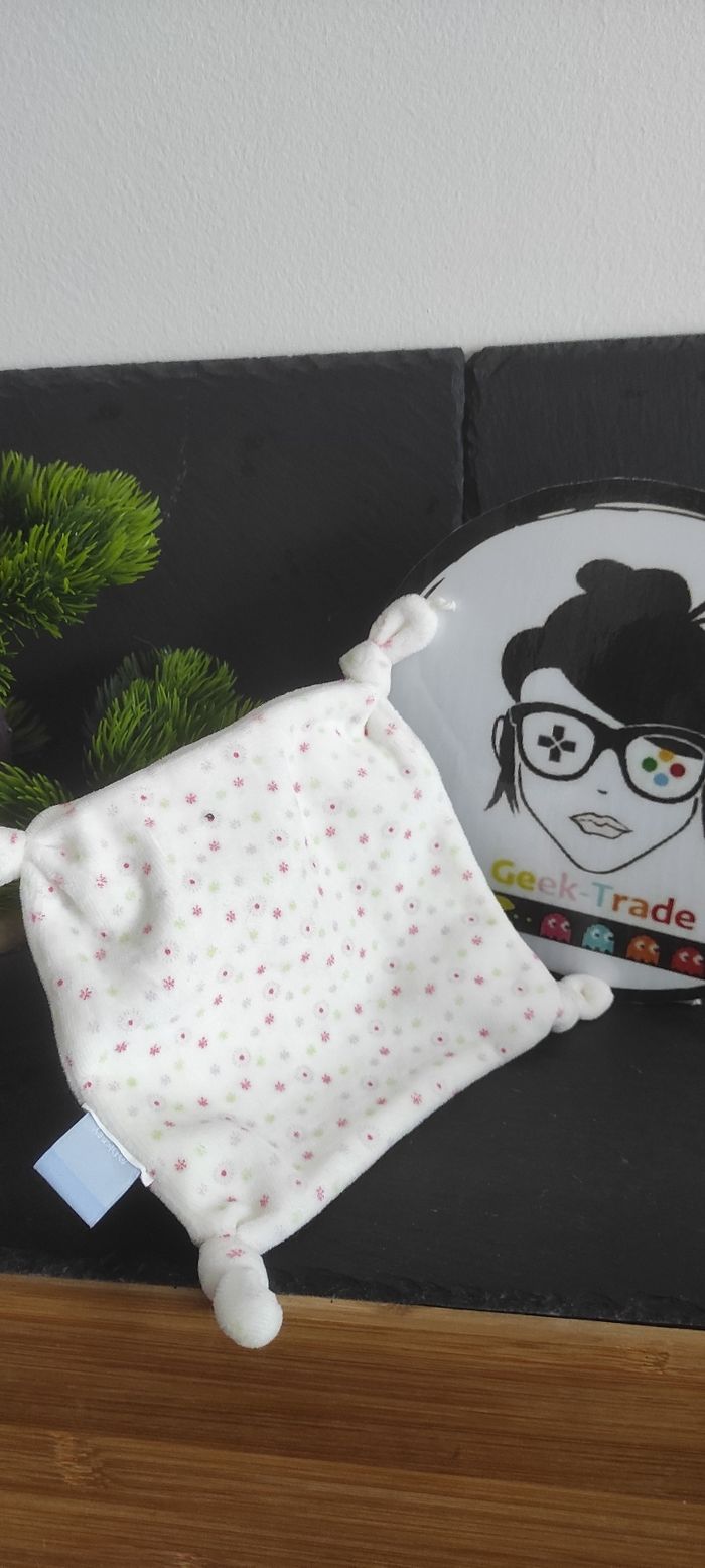 doudou plat mouchoir disney baby blanc vert rose violet fleur tache flocon noeud carré - photo numéro 1