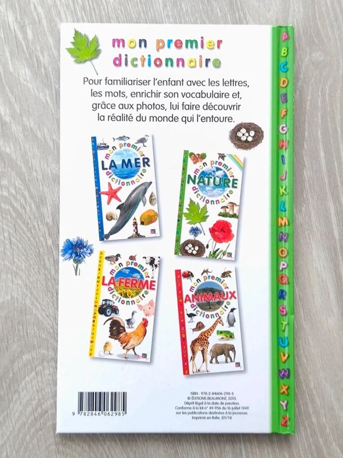 📍Livre Neuf ! 📍Mon premier dictionnaire Nature. 🌈Résumé🌈 👉Grâce à ce magnifique dictionnaire l'enfant pourra se familiariser avec les lettres, les mots et enrichir son vocabulaire. Les très belles photos présentes à l'intérieur de ce livre lui permettront de découvrir la réalité du monde qui l'entoure. 👉Pour trouver des livres c'est par ici : 🔎#elisabethdesignLivre 📫⏳ Envoi rapide et soigné le jour même de l'achat dans la mesure du possible! 🤝 Frais de port ajusté au plus bas.