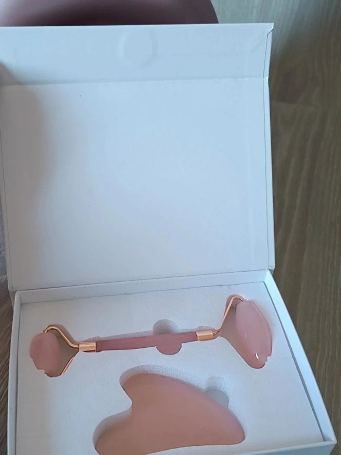 📍Set de massage Gua Sha pour visage. 📍Boîte aimanté. 📍Neuf. 👉Offrez à votre peau un massage doux et efficace pour embellir votre peau et dessiner l’ovale du visage ! 👉Utilisez le Gua Sha visage en quartz rose tous les matins et/ou tous les soirs et en complément du Roller pour tonifier et libérer les tensions du visage et du cou. 👉Sa forme ergonomique permet d’épouser les lignes de votre visage pour un lifting naturel et une sensation de bien-être. 👉Il est livré avec une jolie boîte aimantée pour le ranger avec soin et le transporter facilement.