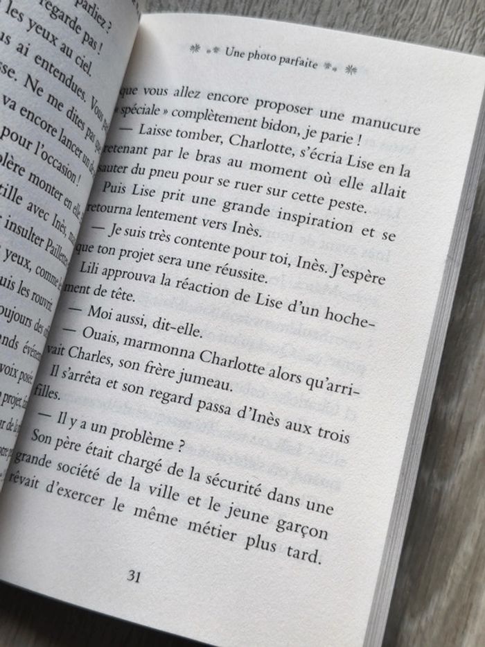 📍Livre Neuf ! 📍Paillettes et compagnie Tome 6 : une photo parfaite. 🌈Résumé🌈 👉Bientôt la photo de classe ! Pour ce grand jour, Lise et Élodie proposent des manucures et des petits cadeaux au salon Paillettes et Compagnie. Mais Inès, leur ennemie jurée, ouvre un stand de maquillage concurrent... à l'intérieur de l'école. Cette fois, la guerre est vraiment déclarée ! 👉Pour trouver d'autres livres c'est par ici : 🔎#elisabethdesignLivre 📫⏳ Envoi rapide et soigné le jour même de l'achat dans la mesure du possible! 🤝 Frais de port ajusté au plus bas.