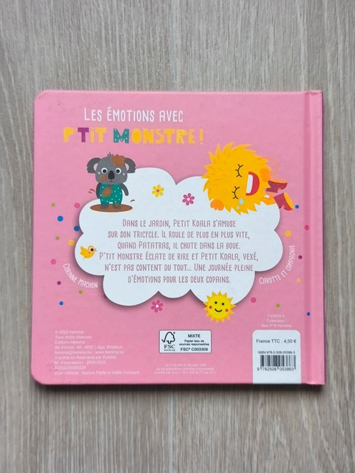 📍Livre Neuf ! 📍Les émotions avec p'tit monstre ! 🌈Résumé🌈 👉Découvre les émotions avec P'tit Monstre. Petit Koala et P'tit Monstre jouent dans le jardin. Ils glissent sur le toboggan, font du tricycle, quand, patatras !, Petit Koala tombe dans une flaque d'eau. P'tit monstre éclate de rire et Petit Koala, très vexé et trempé, n'est pas content du tout... 👉Pour trouver d'autres livres c'est par ici : 🔎#elisabethdesignLivre 📫⏳ Envoi rapide et soigné le jour même de l'achat dans la mesure du possible! 🤝 Frais de port ajusté au plus bas.