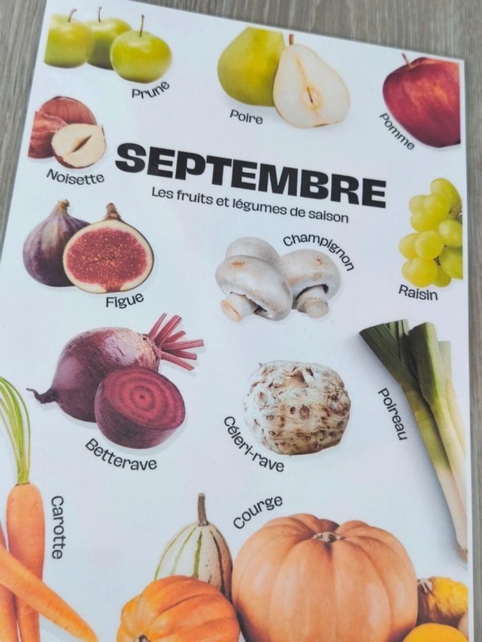 📍Fruits et légumes de saison pour Septembre. 📍Format A4. 📍Papier 250G plastifié pour une bonne tenue ! 📍Neuf. 👉Pour trouver d'autres activités c'est par ici : 🔎#elisabethdesignAfficheA4 📫⏳ Envoi rapide et soigné le jour même de l'achat dans la mesure du possible! 🤝 Frais de port ajusté au plus bas. Ref: #29-Affiche-A4
