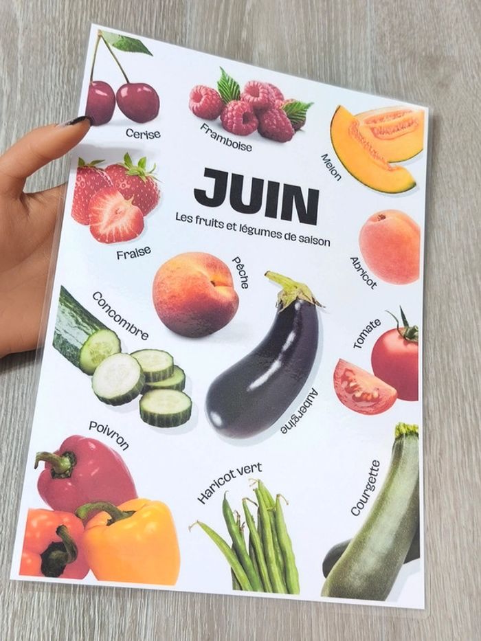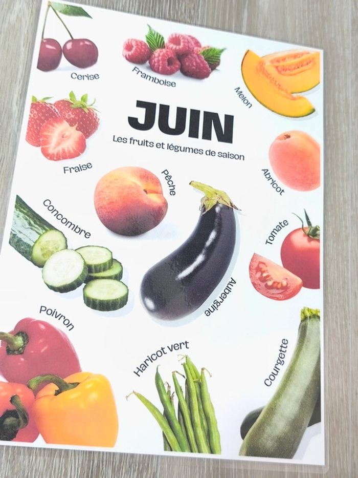 📍Fruits et légumes de saison pour Juin. 📍Format A4. 📍Papier 250G plastifié pour une bonne tenue ! 📍Neuf. 👉Pour trouver d'autres activités c'est par ici : 🔎#elisabethdesignAfficheA4 📫⏳ Envoi rapide et soigné le jour même de l'achat dans la mesure du possible! 🤝 Frais de port ajusté au plus bas. Ref: #26-Affiche-A4