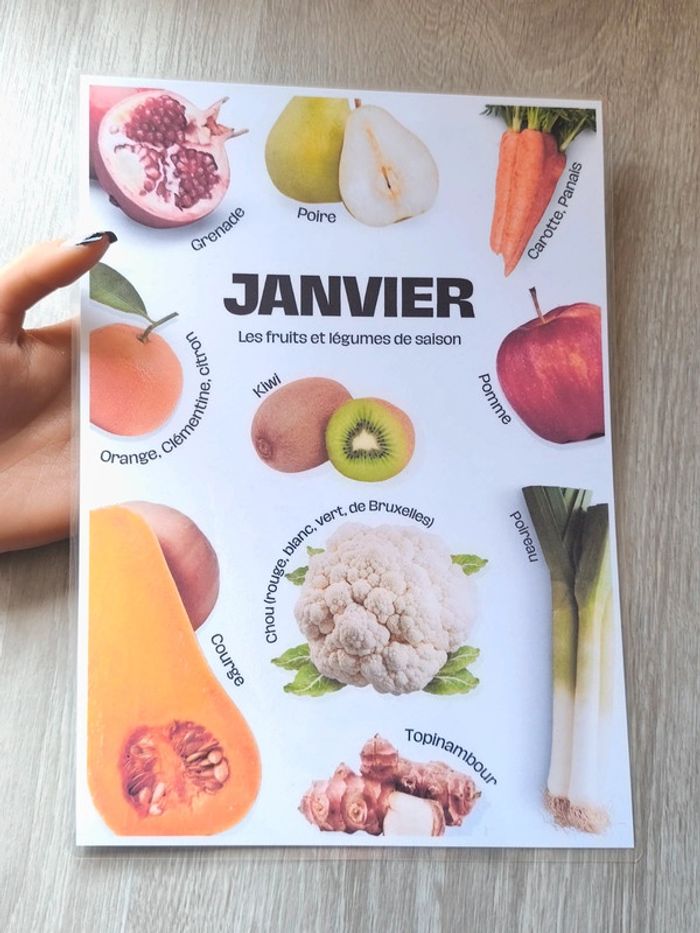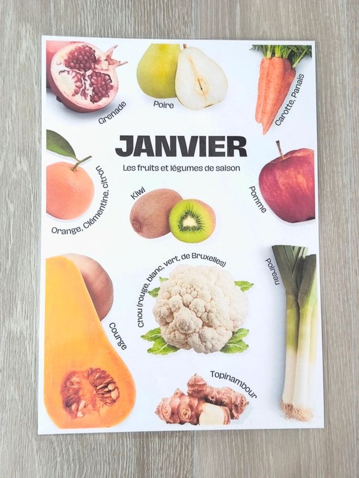 📍Fruits et légumes de saison pour Janvier. 📍Format A4. 📍Papier 250G plastifié pour une bonne tenue ! 📍Neuf. 👉Pour trouver d'autres activités c'est par ici : 🔎#elisabethdesignAfficheA4 📫⏳ Envoi rapide et soigné le jour même de l'achat dans la mesure du possible! 🤝 Frais de port ajusté au plus bas. Ref: #21-Affiche-A4