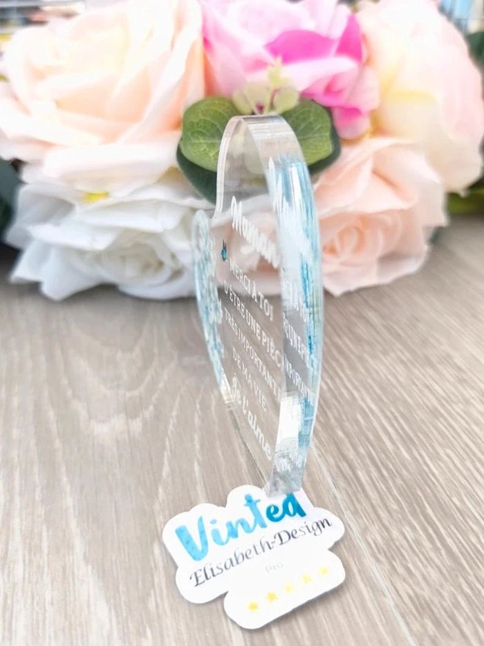 📍Plaque neuve. 📍Plaque cœur " Maman... " 📍Plaque cadeau. 📍Plaque en acrylique de 1 cm d'épaisseur. 📍Taille : 10 x 9 cm. 👉Pour trouver d'autres activités c'est par ici : 🔎#elisabethdesignCadeau 📫⏳ Envoi rapide et soigné le jour même de l'achat dans la mesure du possible! 🤝 Frais de port ajusté au plus bas.