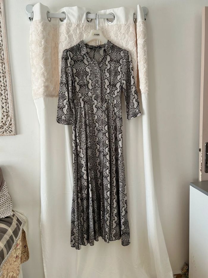 Robe longue Zara, col chemise, boutonnée sur tout le devant, poches invisibles sur les côtés Très peu portée, parfait état 👛Réduction sur lot activé jusqu'à -30% 🎁Envoi rapide et soigné N'hésitez pas à vous abonner je poste des nouveautés très régulièrement à un prix mini pour un max de style😍 alors ne réfléchis pas trop longtemps🛍️ Bon shopping🛍️🧥👒👗👠👜
