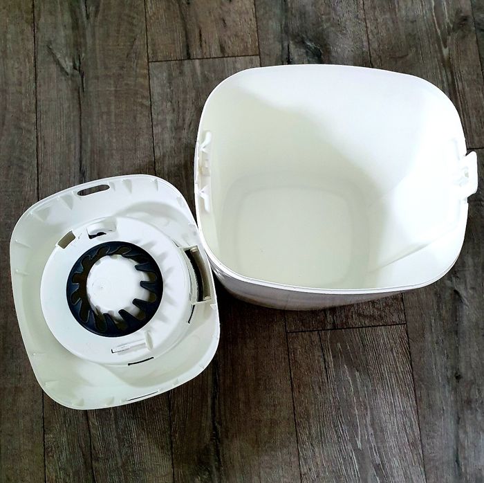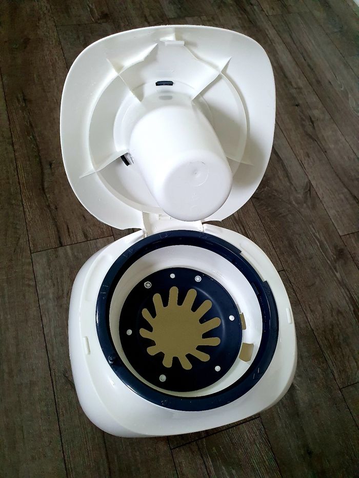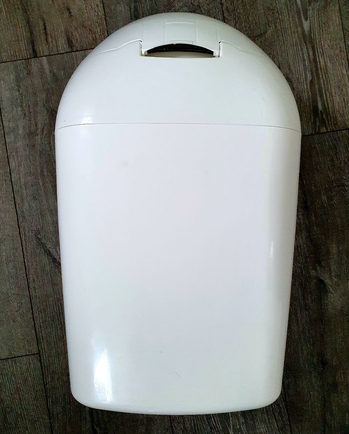 Très bon état Tourne et emballe chaque couche pour emprisonner les odeurs Le film antibactérien élimine 99 % des microbes tout en offrant une protection imbattable contre les mauvaises odeurs 100 fois plus efficace pour prévenir les mauvaises odeurs que les sacs à couches Peut contenir jusqu’à 28 couches Poubelle ultra pratique (Perso je commandais les recharge sur Amazon, ils font des reductions par lot très régulièrement 😉)