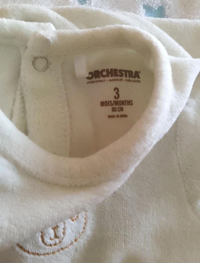 Pyjama velours motifs ourson 3M/60cm Orchestra.