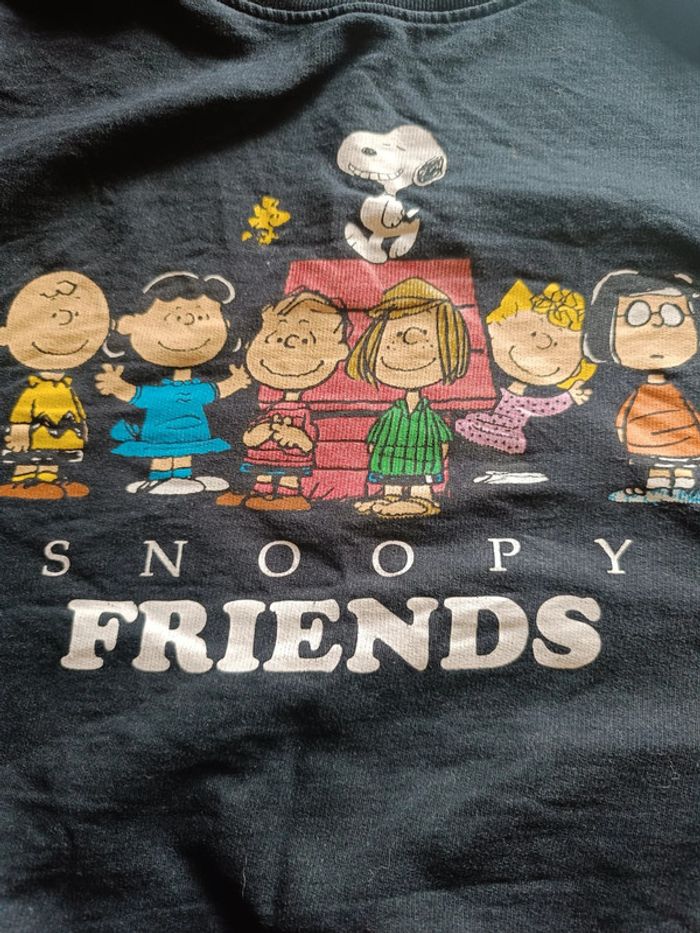 Sweat PEANUTS Noir Impressions colorées sur le devant "SNOOPY FRIENDS" Manches 3/4 TRES BON ETAT Allez voir mes autres ventes!