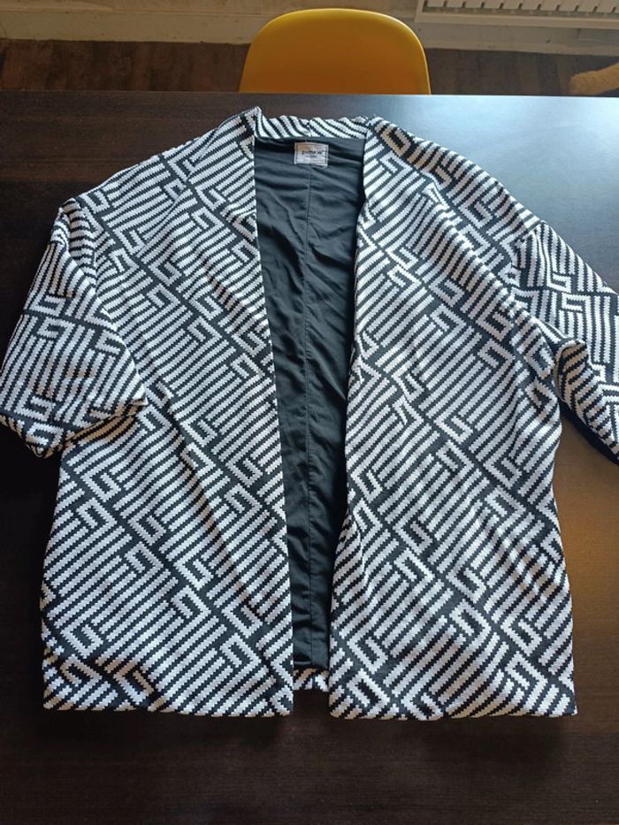 Veste PIMKIE Imprimé noir & blanc Esprit kimono Poches Manches 3/4 Doublée 49% Coton, 43% Polyester, 7% Polyamide & 1% Elasthanne TAILLE M TRES BON ETAT Allez voir mes autres ventes!