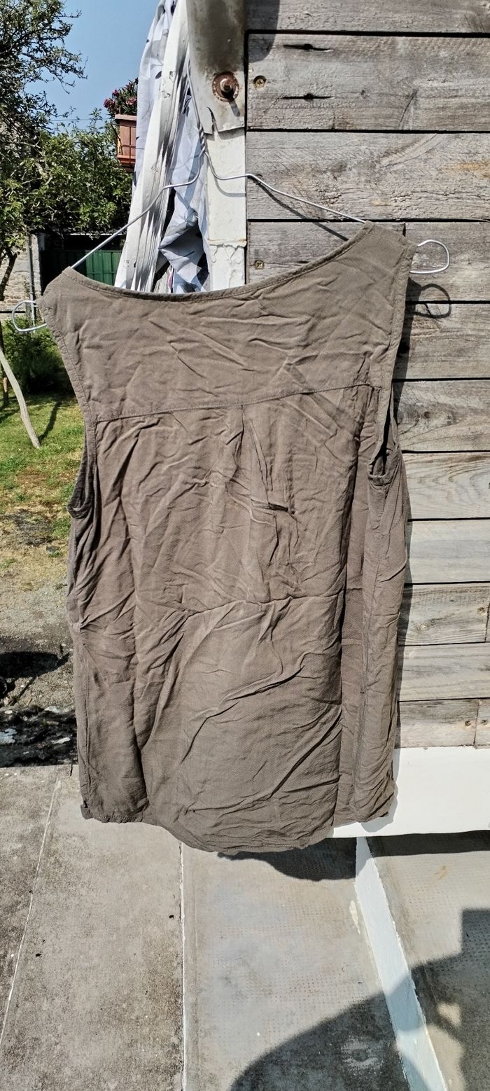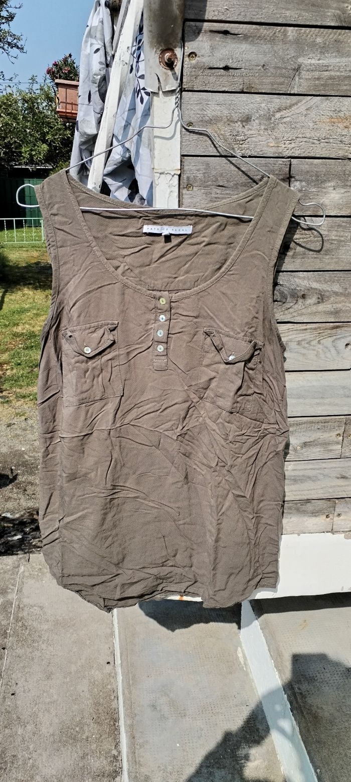 Débardeur kaki en coton pour femme. Marque Patrice Bréal. Taille 40. Comme neuf. Que mondial relais ou Relais Colis.
