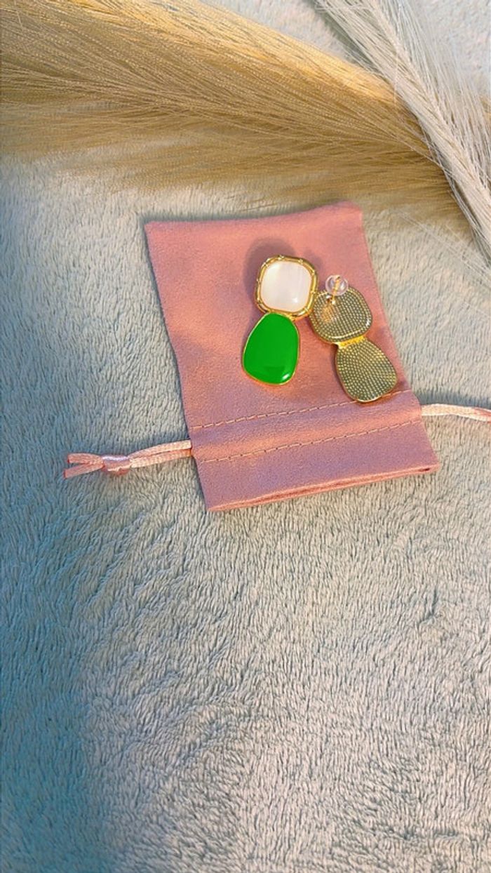 Boucles d’oreilles vert fuchsia - photo numéro 2
