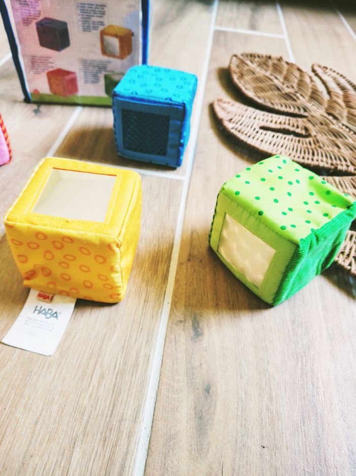 👶 Cubes d'éveil multi activités sensorielles en tissu marque Haba