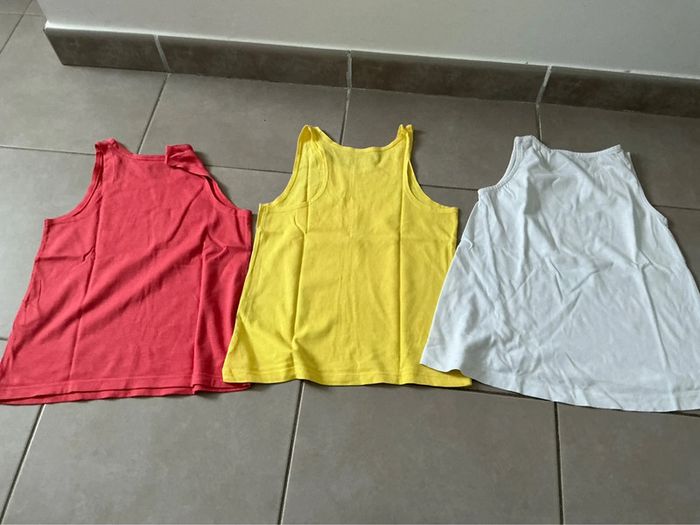 Lots 3 débardeurs en taille 8 ans de marque kiabi. En très bon état Un corail, un jaune et un blanc