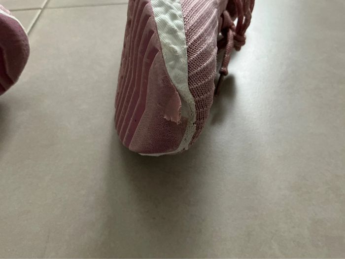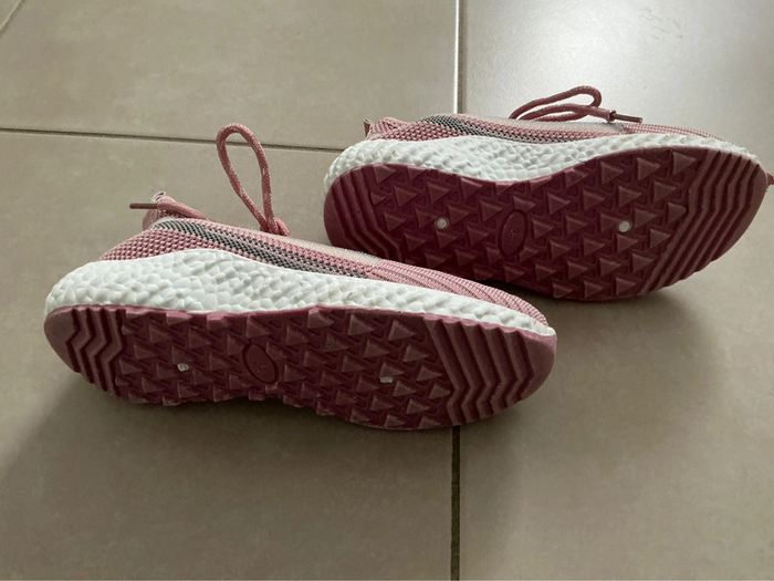 Chaussures de salle pointure 34. Marque FPC De couleur rose Très bon état. Le revêtement coloré est un peu décollé sur l’avant de la chaussure gauche