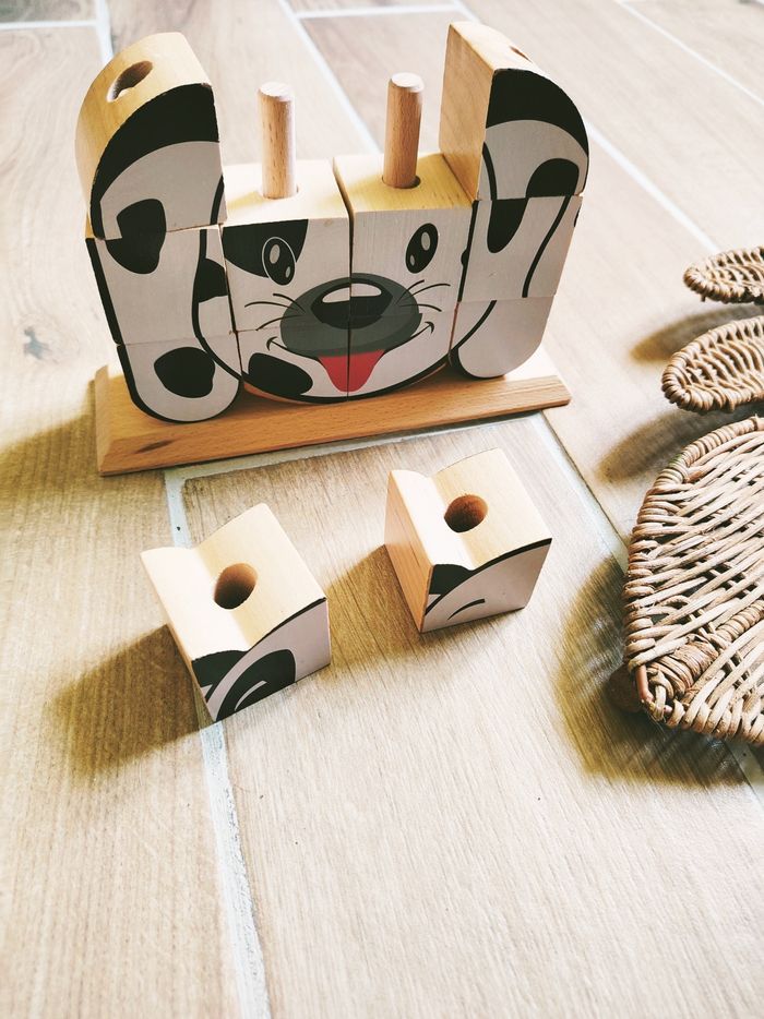 🐕Chien dalmatien 2 en 1 puzzle et blocs à empiler en bois - photo numéro 1