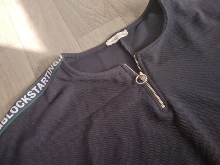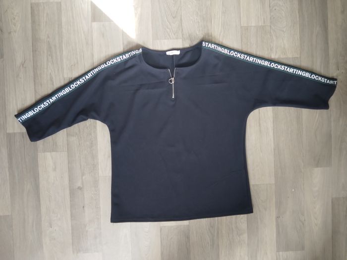 T-shirt femme manche 3/4 petit zip sur le col, bleu marine neuf non porté taille M (38)