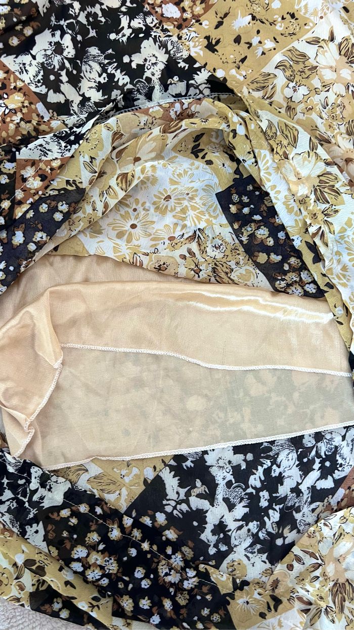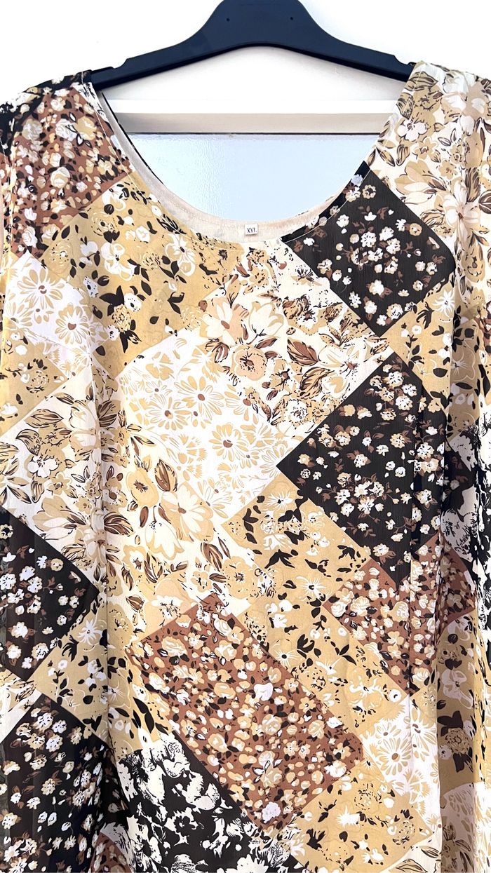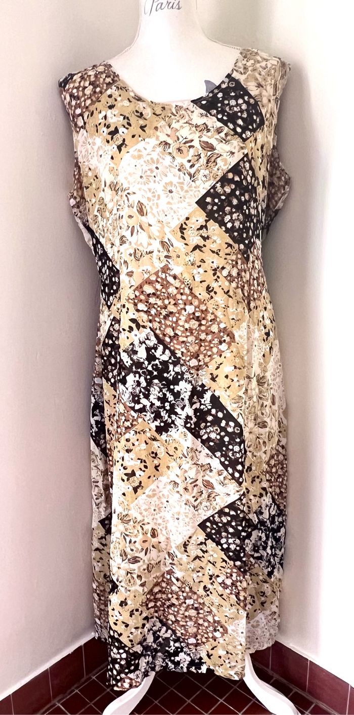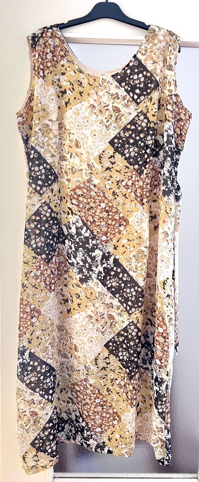 Robe d'été longue, sans manche Taille indiqué XXL mais taille 48 Coloris noir, blanc, jaune moutarde, marron clair Motifs petites fleurs Lien à nouer au dos Maison non fumeur et sans animaux Robe doublée d'un tissu satiné 58 cm de largeur (robe mesurée à plat d'aisselle à aisselle) 123 cm de longueur Les bretelles ont été recousues de l'intérieur pour resserrer le décolleté mais les points de couture peuvent être détachés. Maison non fumeur et sans animaux 📩Je réponds rapidement aux messages 📦Envoi rapide et soigné