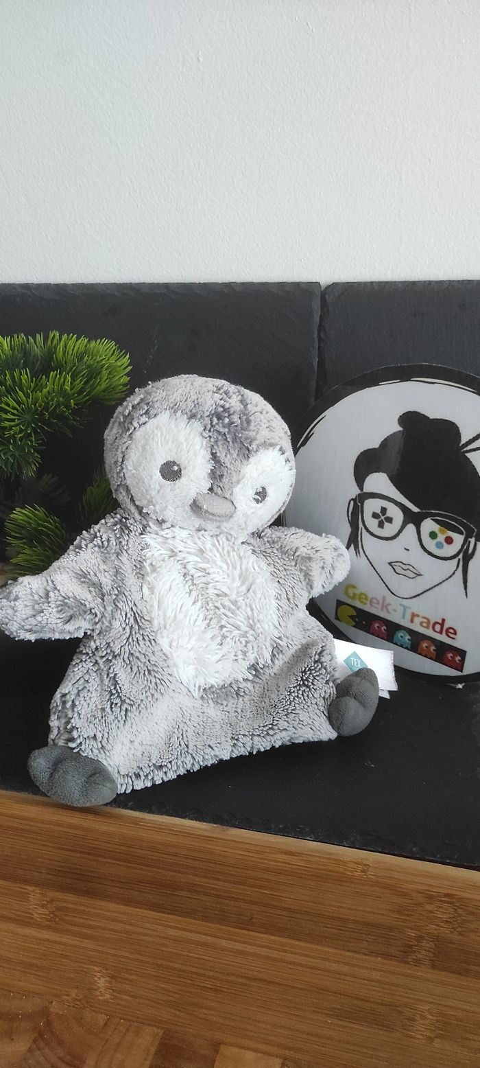 Tex baby Forest doudou marionnette pingouin gris blanc Oiseau Carrefour Fourrure - photo numéro 1