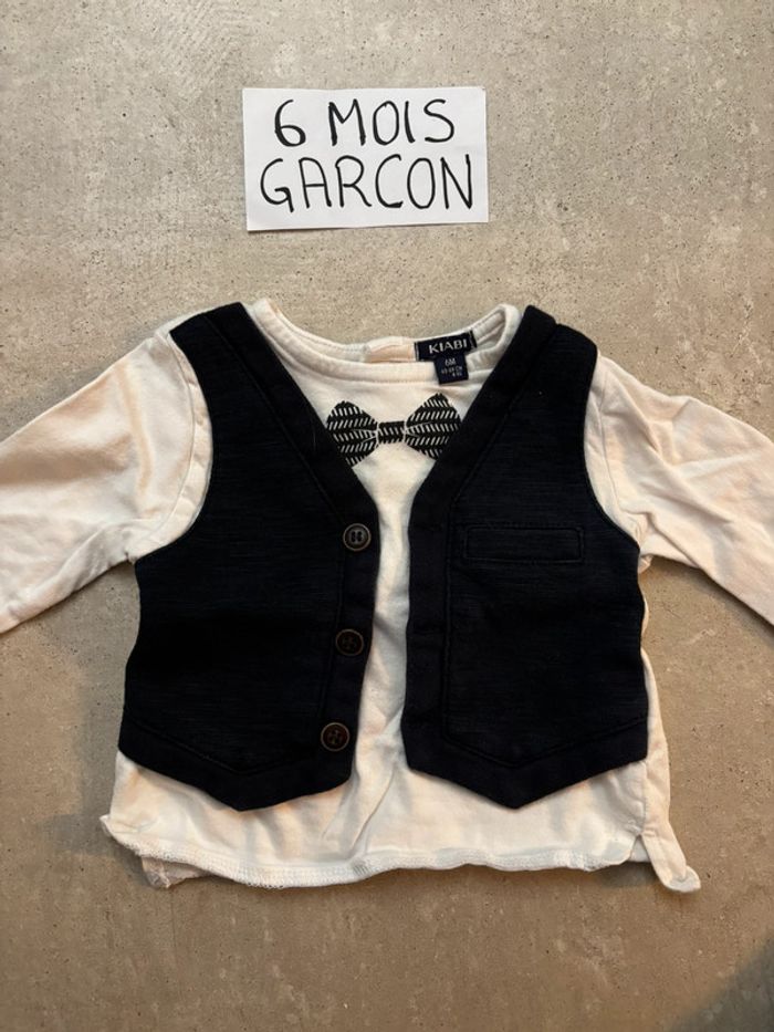 T-shirt manches longues avec blazer intégré Motif : noeud papillon Taille : 6 mois Marque : Kiabi #tiffanie4439_6mois