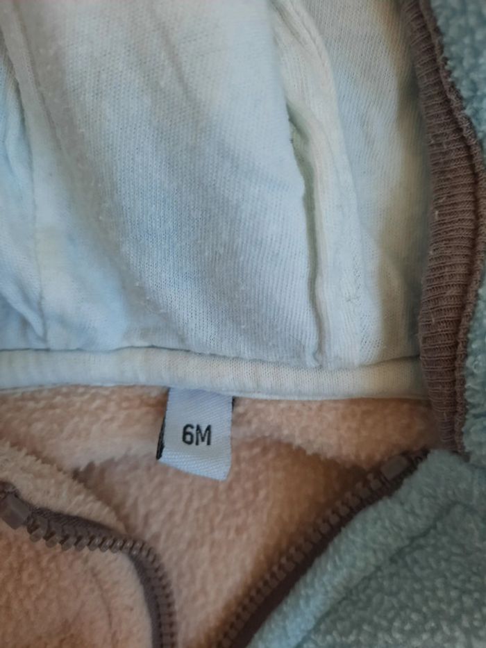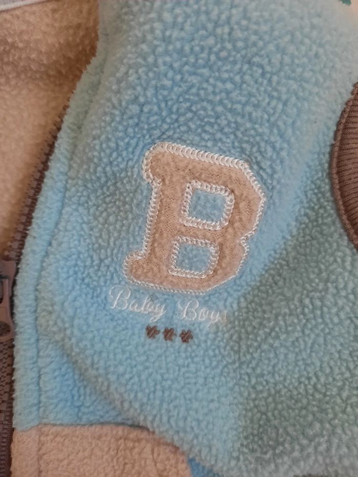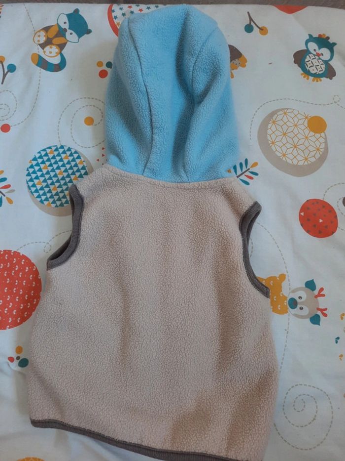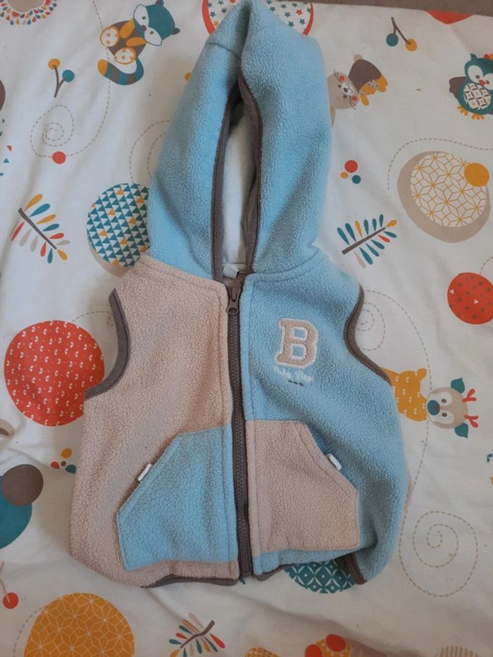 》Gilet polaire sans manches et à capuchede couleur bleu et crème avec symbole B "baby boys" En très bon état. Taille 6 mois.
