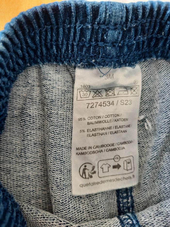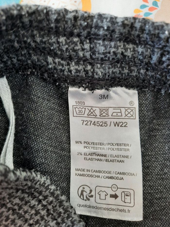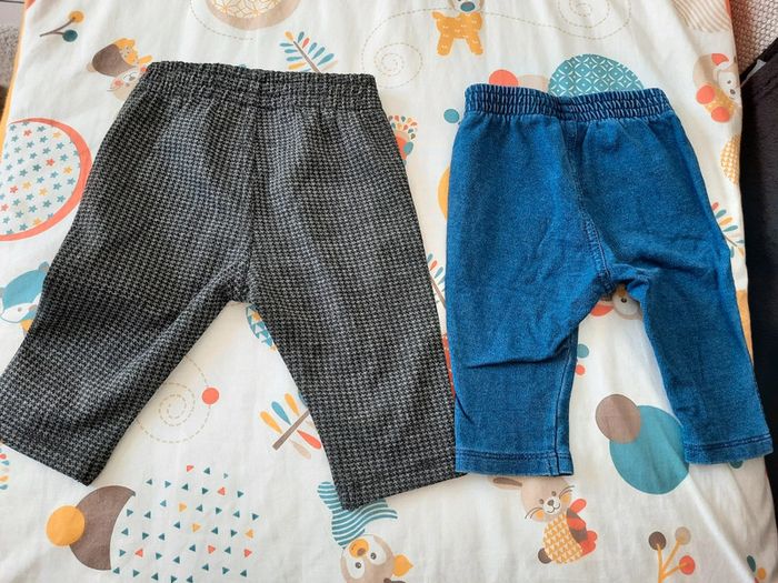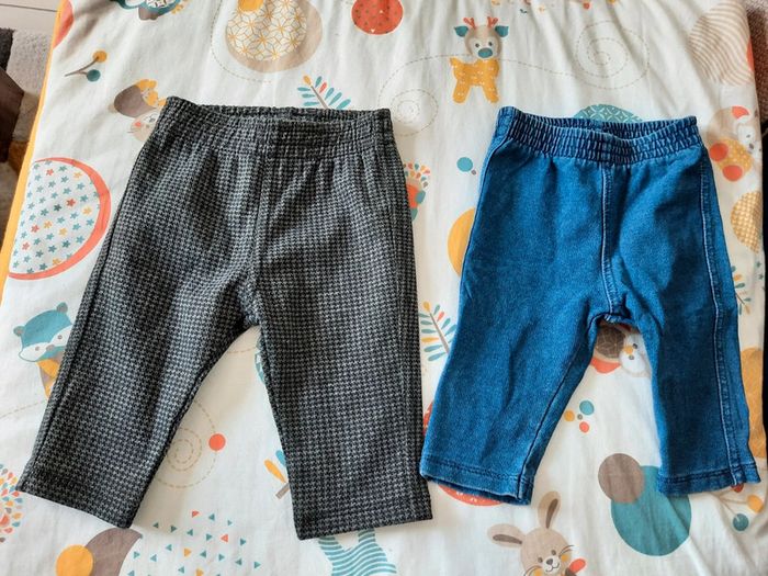》1 jegging gris à carreaux à l'avant et à l'arrière 》1 jegging uni bleu En très bon état. Taille 3 mois