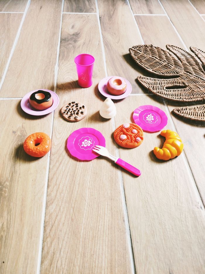 🎀Avec divers gâteaux croissant, donuts, cookie... Ainsi que des assiettes et couverts