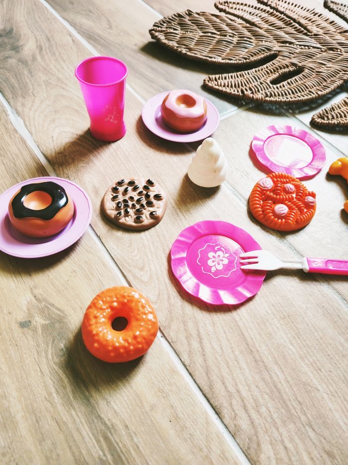 🍪Dinette lot de pâtisseries gâteaux et vaisselle en plastique PL38