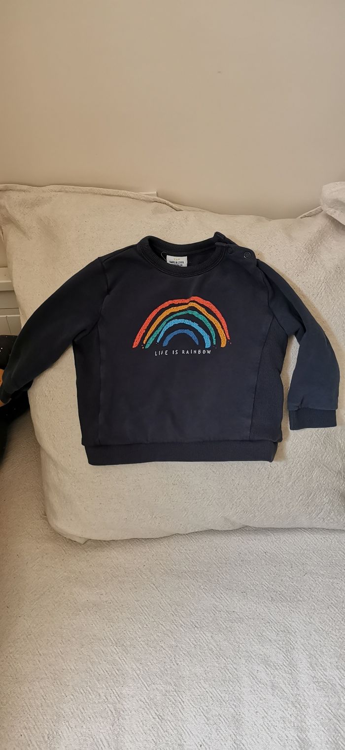 pull tape a l'oeil arc en ciel bleu marine - photo numéro 3