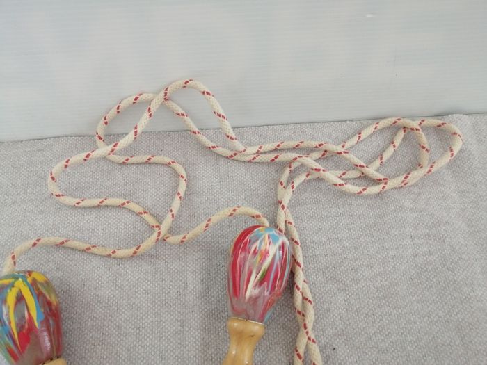 ancienne corde a sauté manches en bois ;corde epaisse longueur de la corde 190 cm tres bon etat