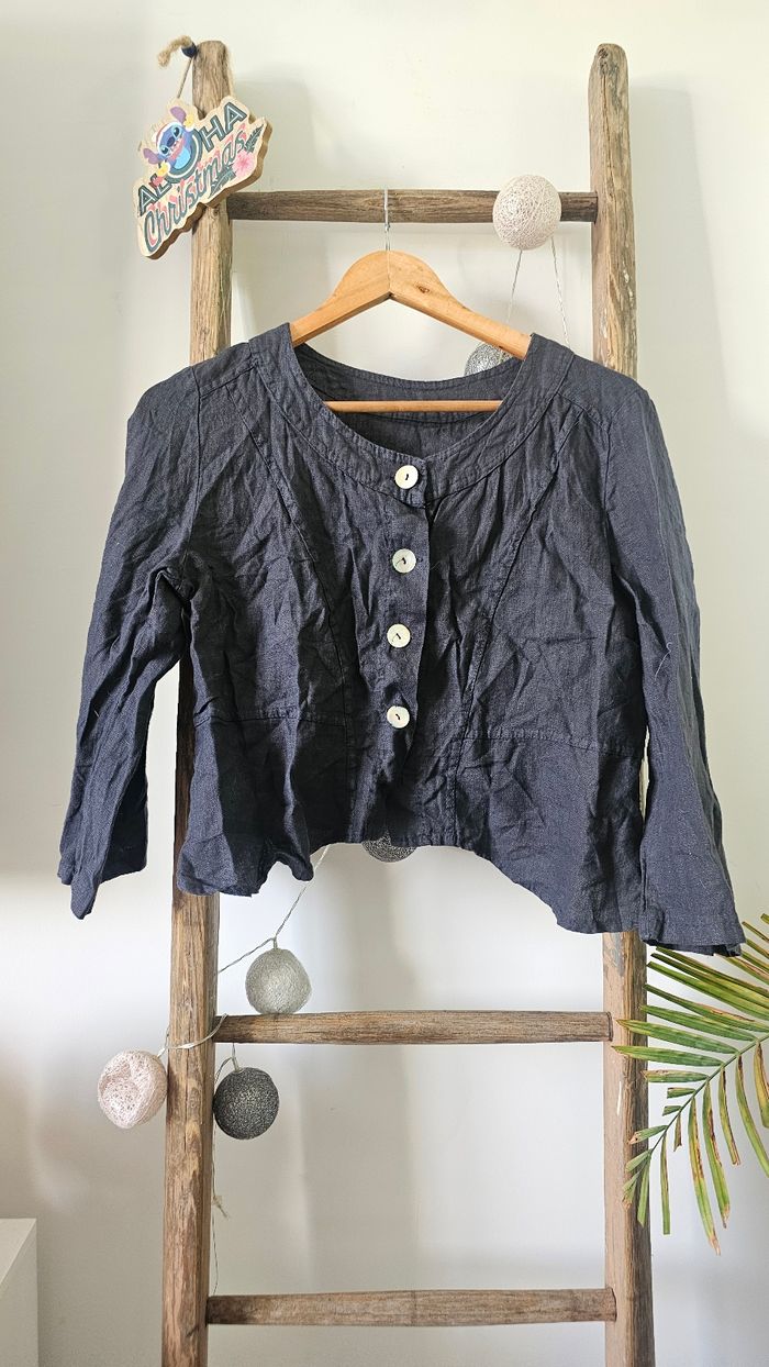 Veste taille 38 M en lin bleu foncé - photo numéro 1