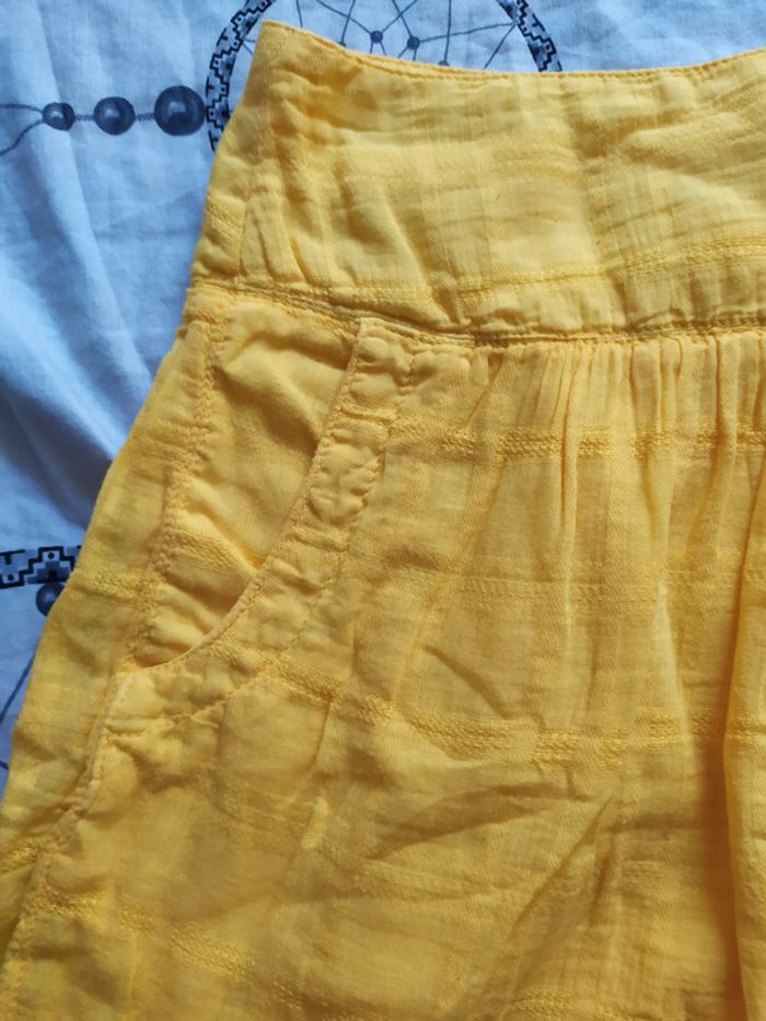 Jupe été jaune avec poches , fermeture éclaire sur le coté taille 4o PROMOD