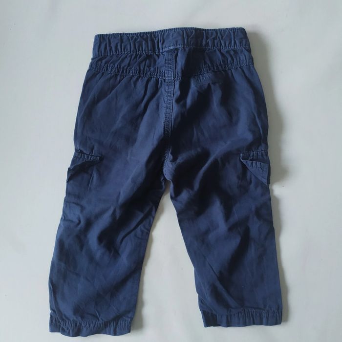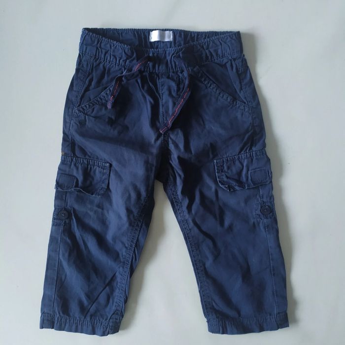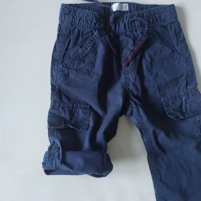 Pantalon fin , qui peu se retrousser pour faire un bermuda , taille 18 mois KIMBALOO , petite tache au niveau de la poche latérale droite voir photo