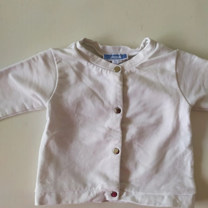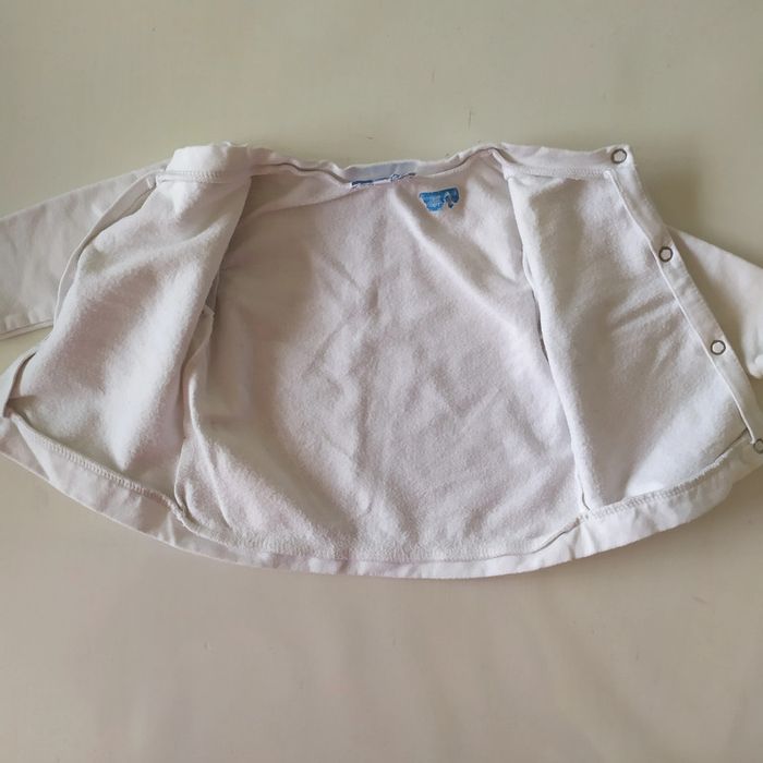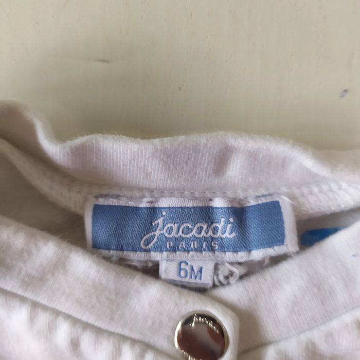 Gilet taille 6mois JACCADI, étiquette de nom à l'intérieur que je n'ai pas réussi à retirer mais ne gêne pas .