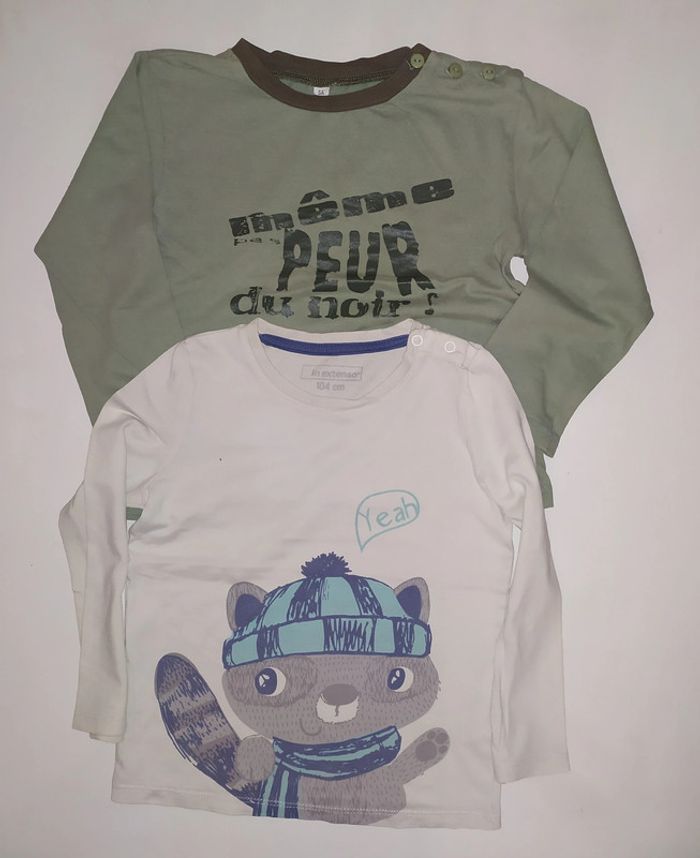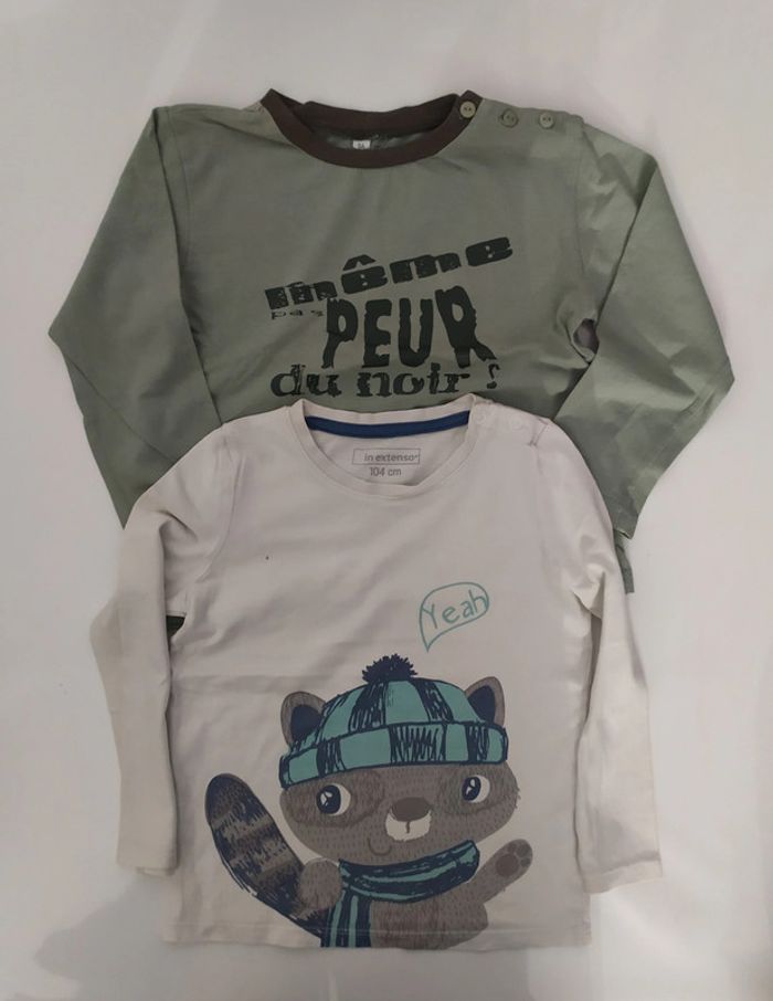 Haut manches longues INEXTESNSO 104 cm taille 4 ans, le vert et en taille 5 ans utilisé en haut de pyjama