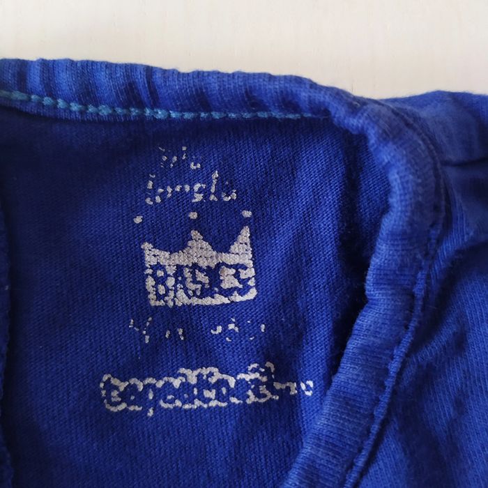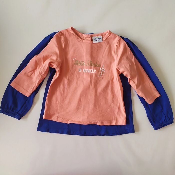 T shirt manches longues TAPE A L'OEIL ,la taille s'est effacée mais j'ai fait une photo avec un t shirt TAO 12 mois pour comparer , je pense que ca doit correspondre a du 18-24 mois