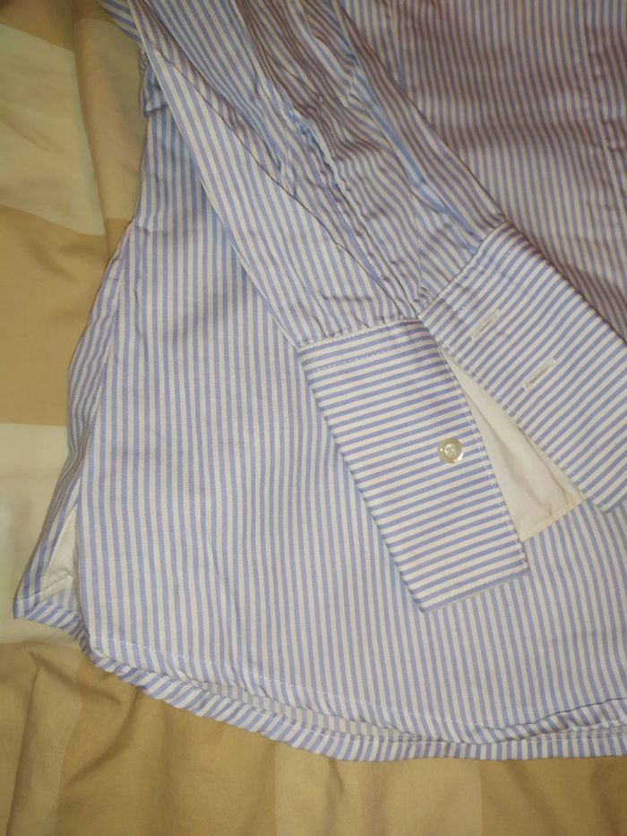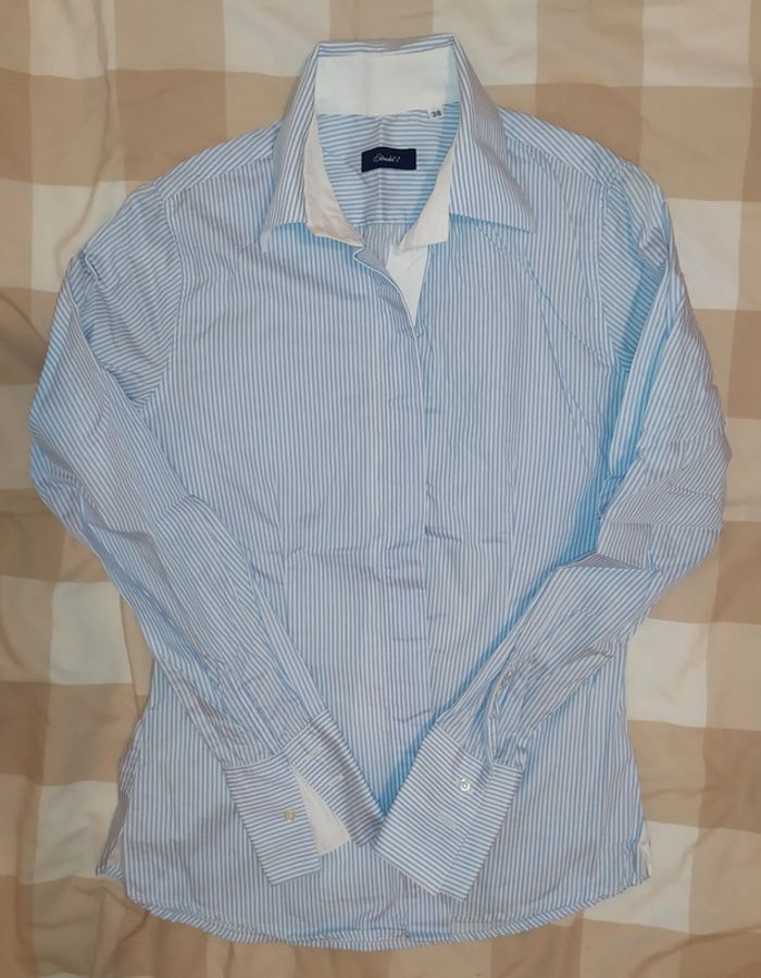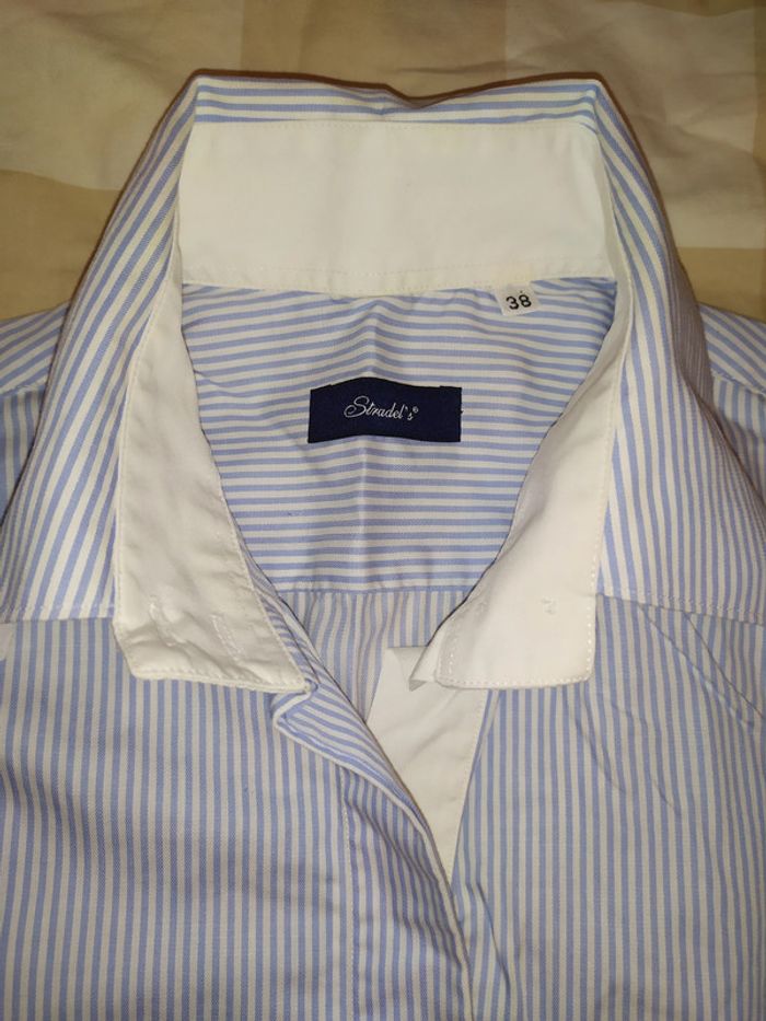Déjà portée, chemise de la marque Stradel's. Chemise cintrée taille 38 Manque un bouton au niveau de la manche voir la photo.