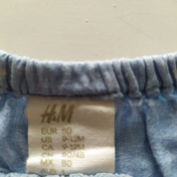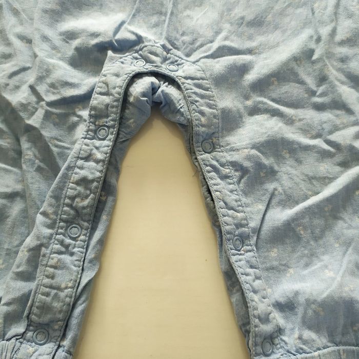 Combinaison fille taille 9-12 mois H&M, pression entre jambes, le tissue s'est un peu éclaircie au niveau d genou .