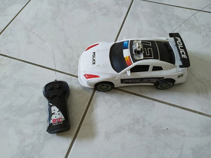 voiture télécommandée, les gyrophares sont tombé mais reste fonctionnel , peu encore servir .