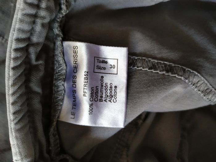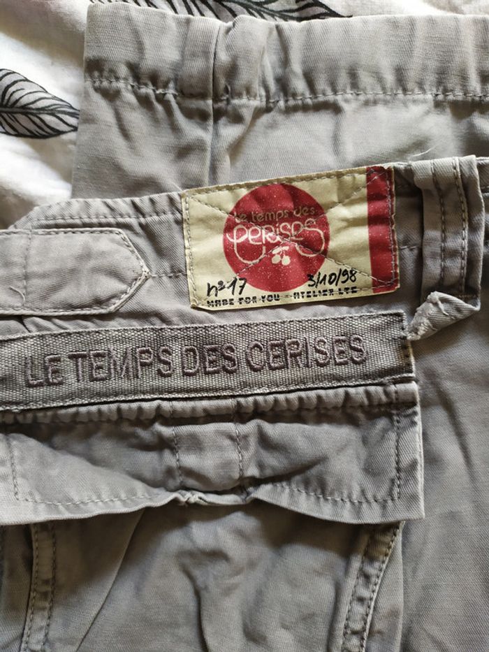 Battle LE TEMPS DES CERISES, taille 30( taille us),mais équivaut a un jean taille 38 ; je peux mesurer au besoin , multi poches, fermeture éclaire en bas des jambes et peut se resserrer avec un lacet , 100 % coton