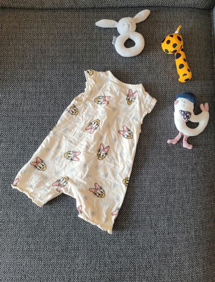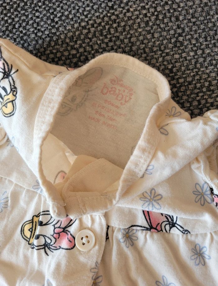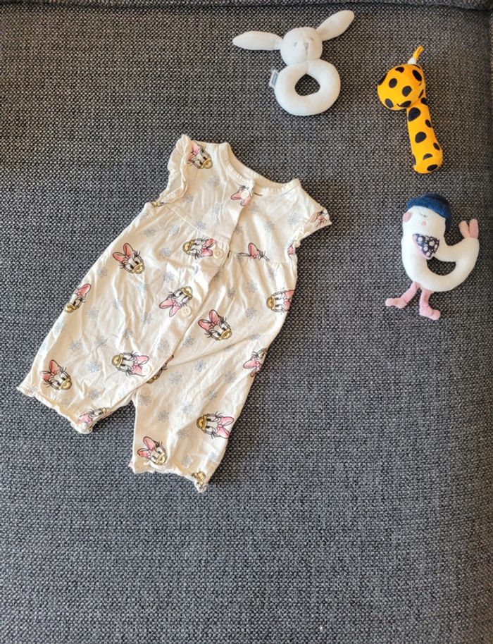 Combishort/barboteuse pour fille Disney de taille 6-9 mois 74 cm (équivalent 9-12 mois dans d'autres marques) En coton donc idéale pour l'été Motifs fleuris et Daisy Pressions au niveau de la couche pour faciliter le change Aucune tâche, ni trou #mabi38780fille6mois #mabi38780fille9mois #mabi38780fille12mois