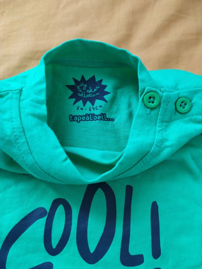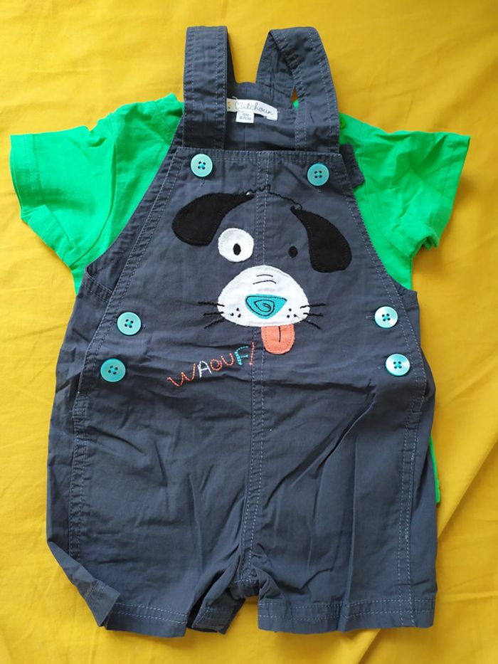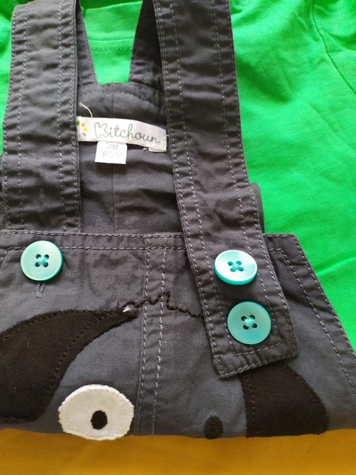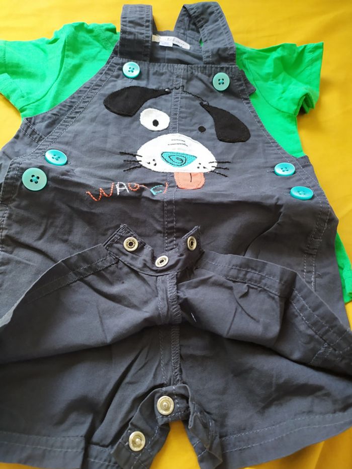 Salopette short et tshirt bébé, s'ouvre aussi par le bas avec pressions.taille 6mois , t shirt TAPE A L'OEIL et salopette KIABI
