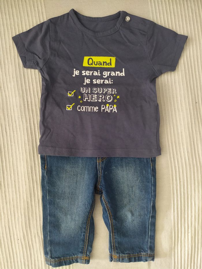 t shirt et jean bébé taille 3mois.marque KIABI en très bon état