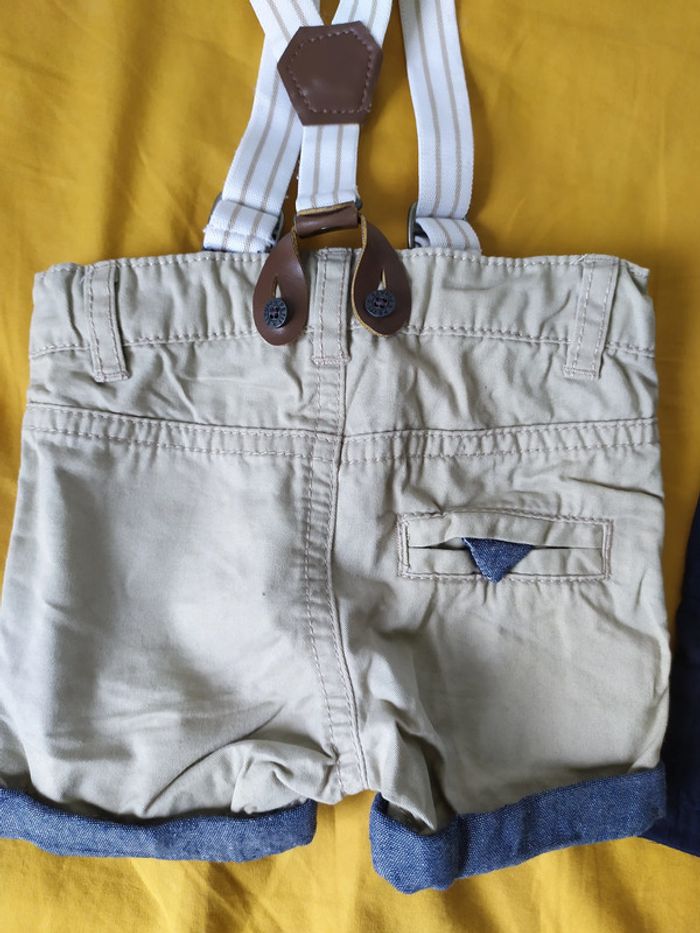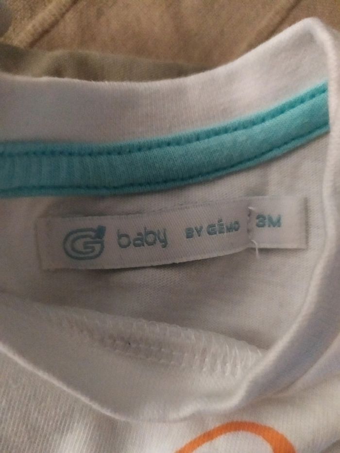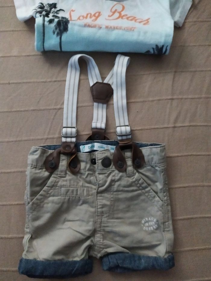 ensemble short réglable à la ceinture , bretelle qui donne un petit look sympa t shirt avec pression sur le coté du col taille 3mois Baby Gemo