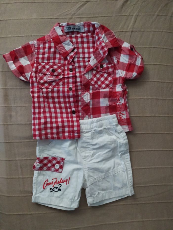 ensemble chemise à bouton et short , taille 6mois short à élastique