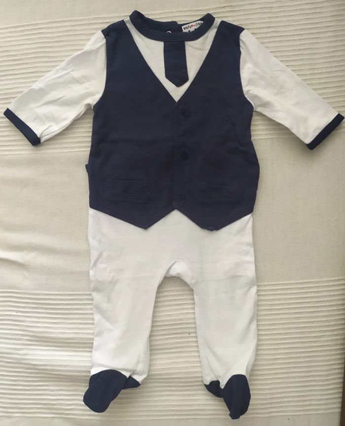 Body effet costume , taille 6mois, une pression est un peu décousus ( voir photo) Le prix de vente peux être négociable à 0,50 ct