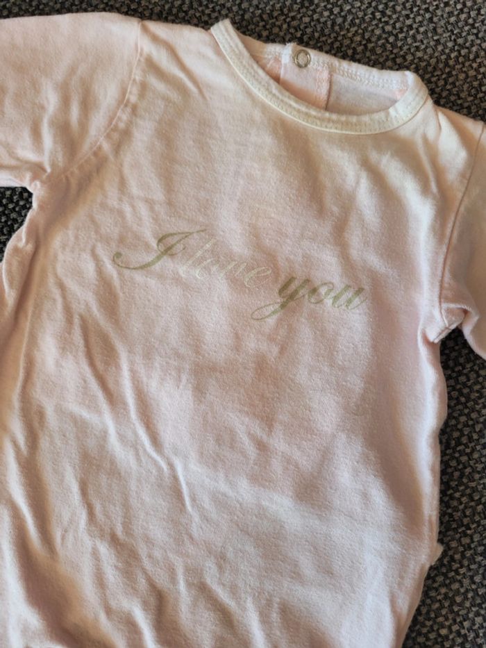 Pyjama pour fille en coton de la marque Orchestra et de taille 3 mois Rose pâle avec écriture "I love you" Attache par pressions dans le dos Aucune tâche ni trou #mabi38780fille3mois