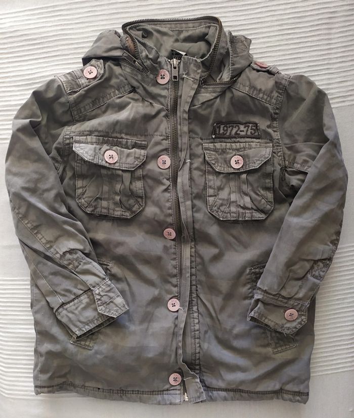 Veste mi saison motif camouflage, taille 6ans, capuche qui se range dans le col. marque tape à l'œil ancien prix 8€ je le baisse a 6€