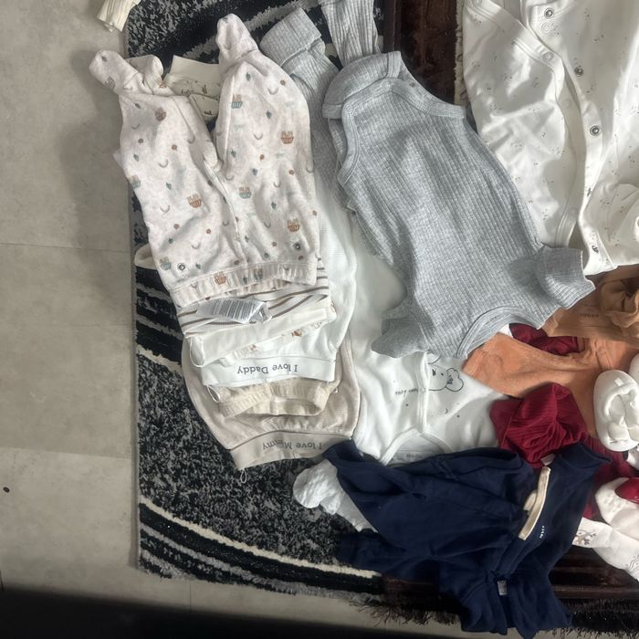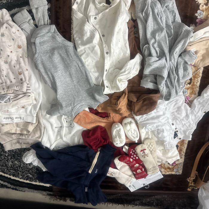 Lot de vêtements H&M , Kiabi , du pareil au même orchestra et plusieurs marques ,9 bas , 5 ensemble, 2 combinaison, 2 hauts , 5 bonnets, 3 chaussettes, 1 paire et 1 bodie